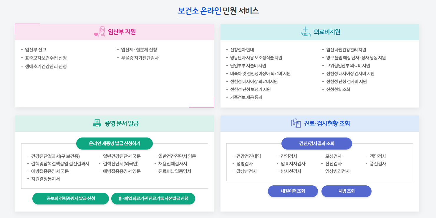 2.메인홈페이지에서 하단에 증명 문서 발급-건강진단결과서(구 보건증)을 클릭합니다.