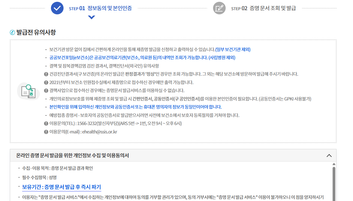 3. 발급 전 유의사항을 읽고 동의하기 체크한 뒤 본인확인을 진행해주세요.