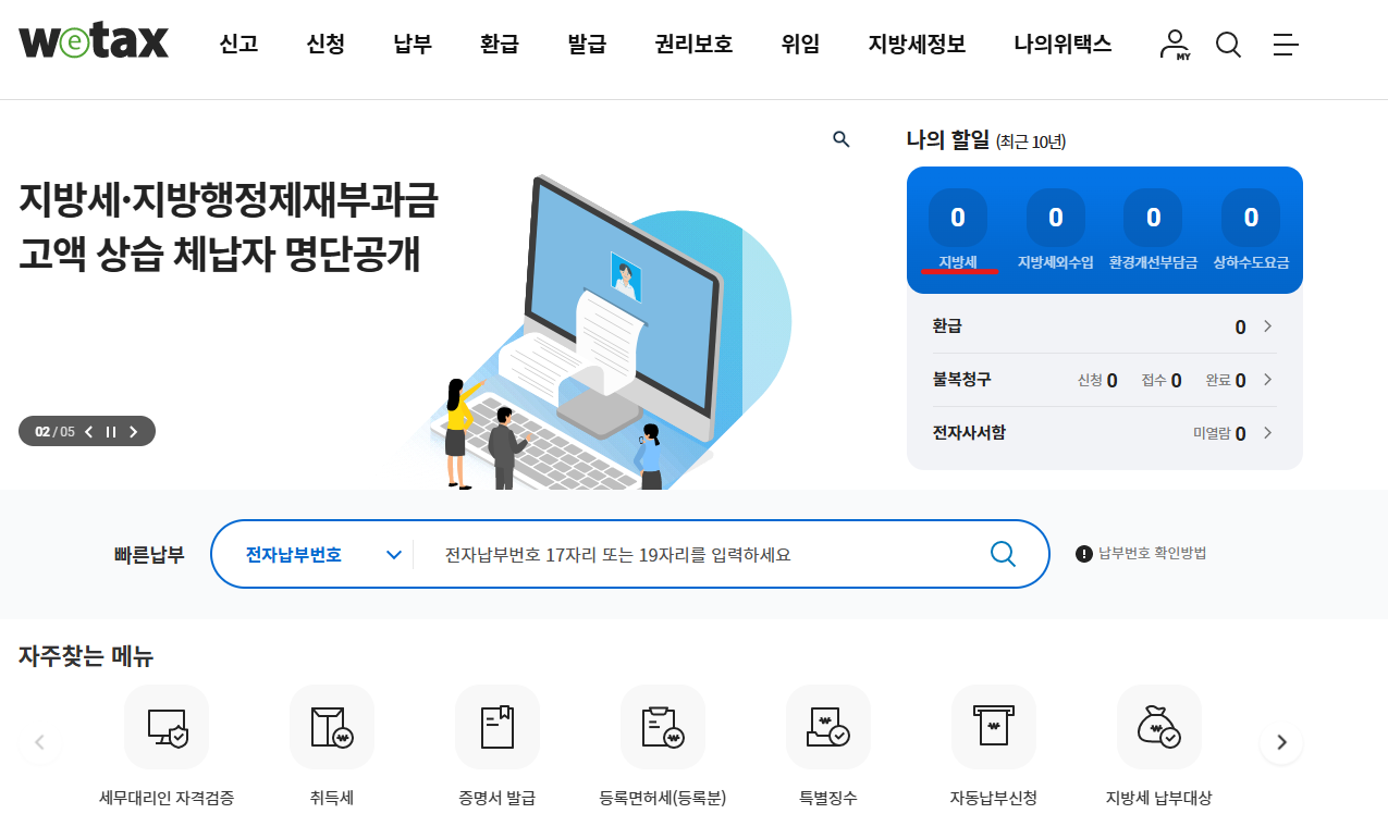 로그인을 하면 나의 할 일-지방세 부분에 숫자가 떠 있으면 들어가서 안내 페이지에 따라 납부를 진행하시면 됩니다.