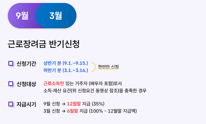 ③반기신청은24년에 근로소득만 있어야 신청할 수 있으나, 사업소득 등이 함께 있는 신청자는 5월 정기신청한 것으로 보아 25년 8월에 지급하게 됩니다.