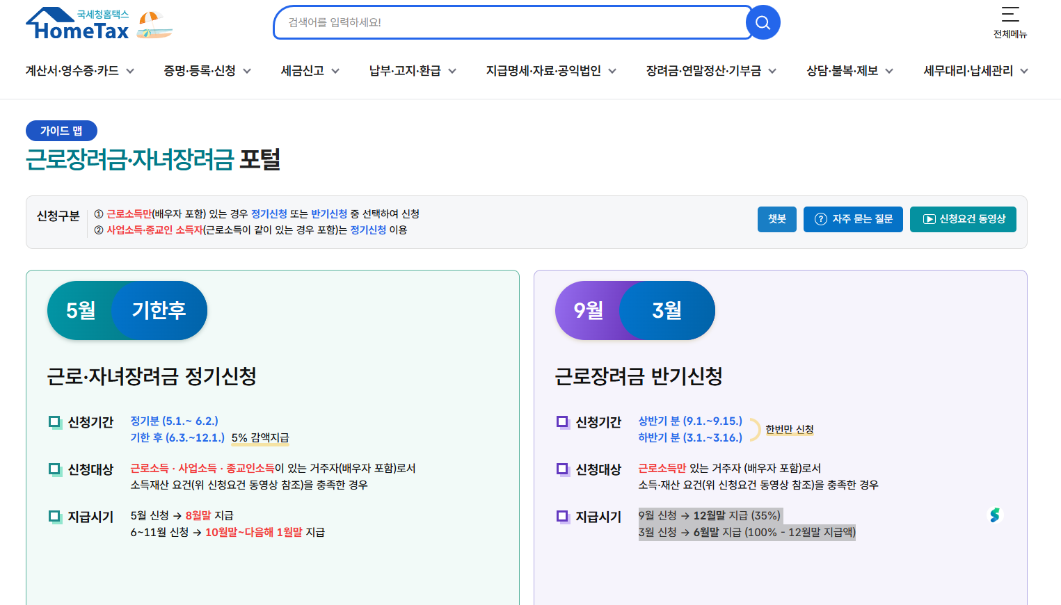 ④상반기분 지급시엔 근로장려금만 지급하고, 자녀장려금도 해당될 경우 하반기분 정산 시 함께 지급합니다.