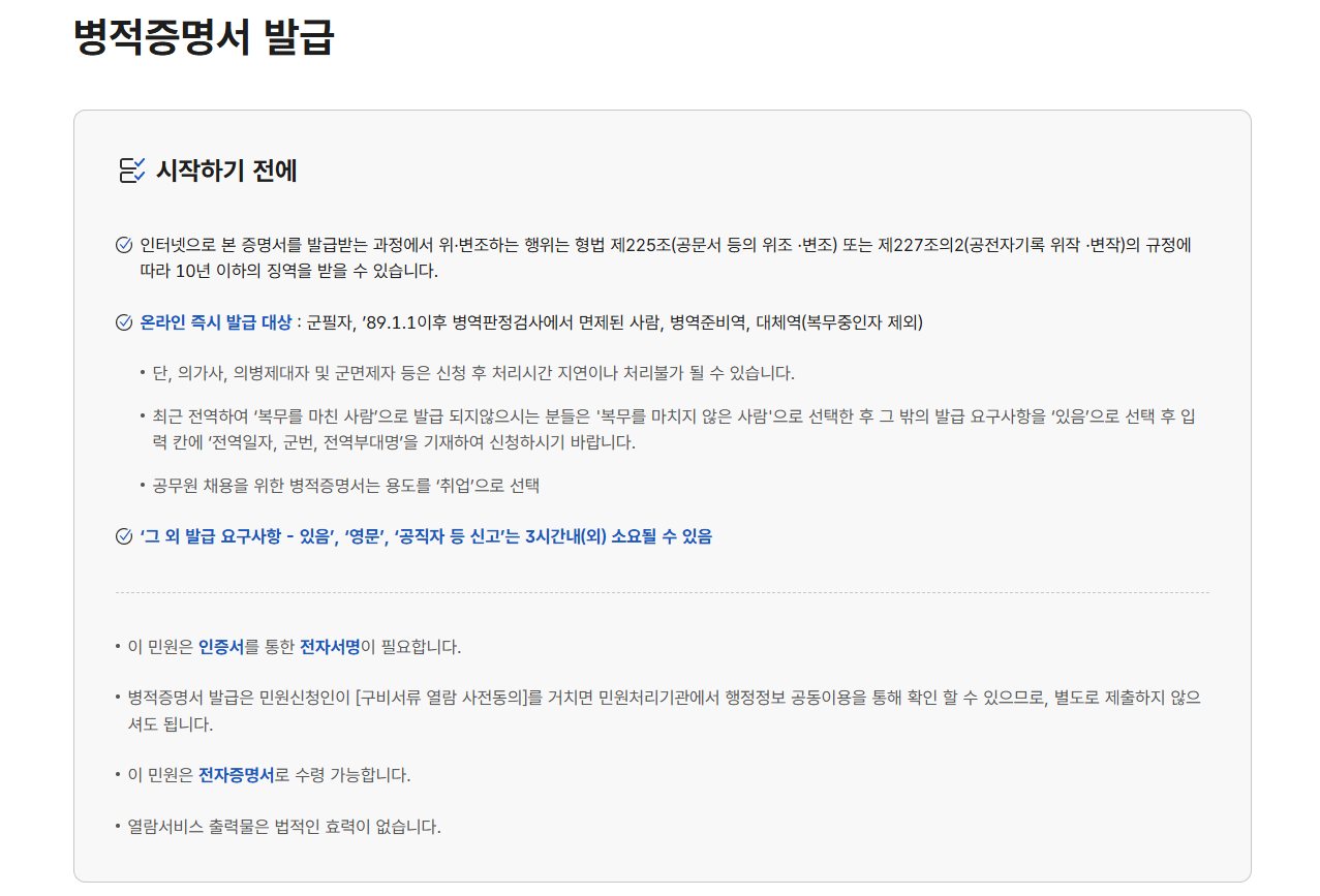 병적증명서는 취업, 학업, 공공 서비스 등 다양한 상황에서 요구되므로, 필요한 경우 미리 준비해 두는 것이 좋습니다.