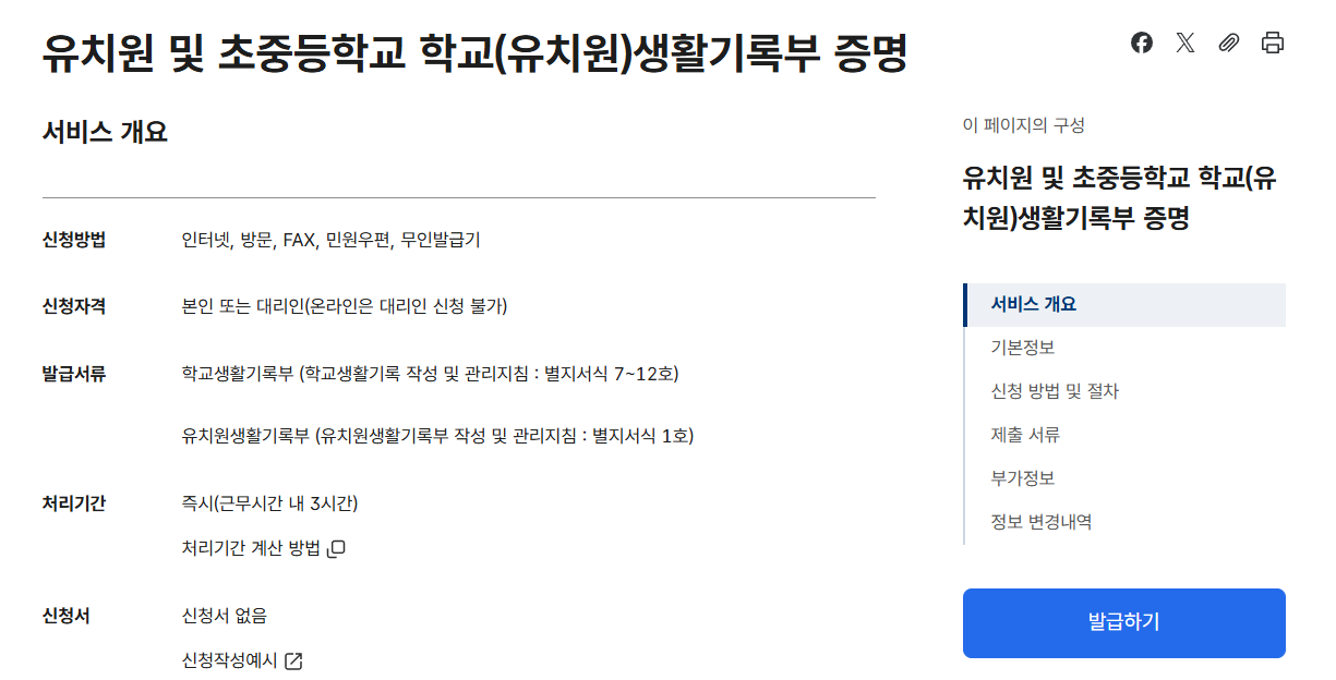생활기록부 발급 방법