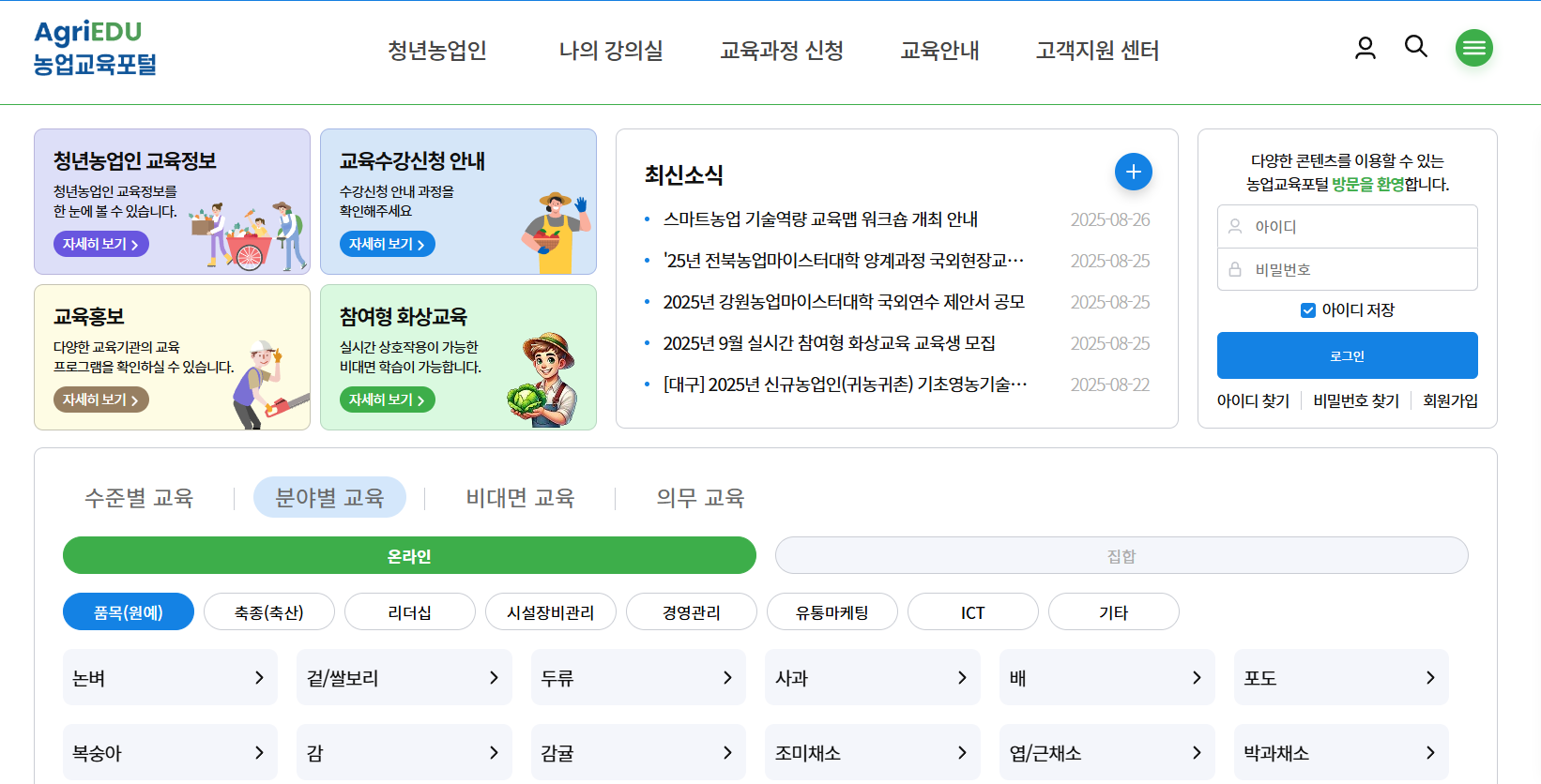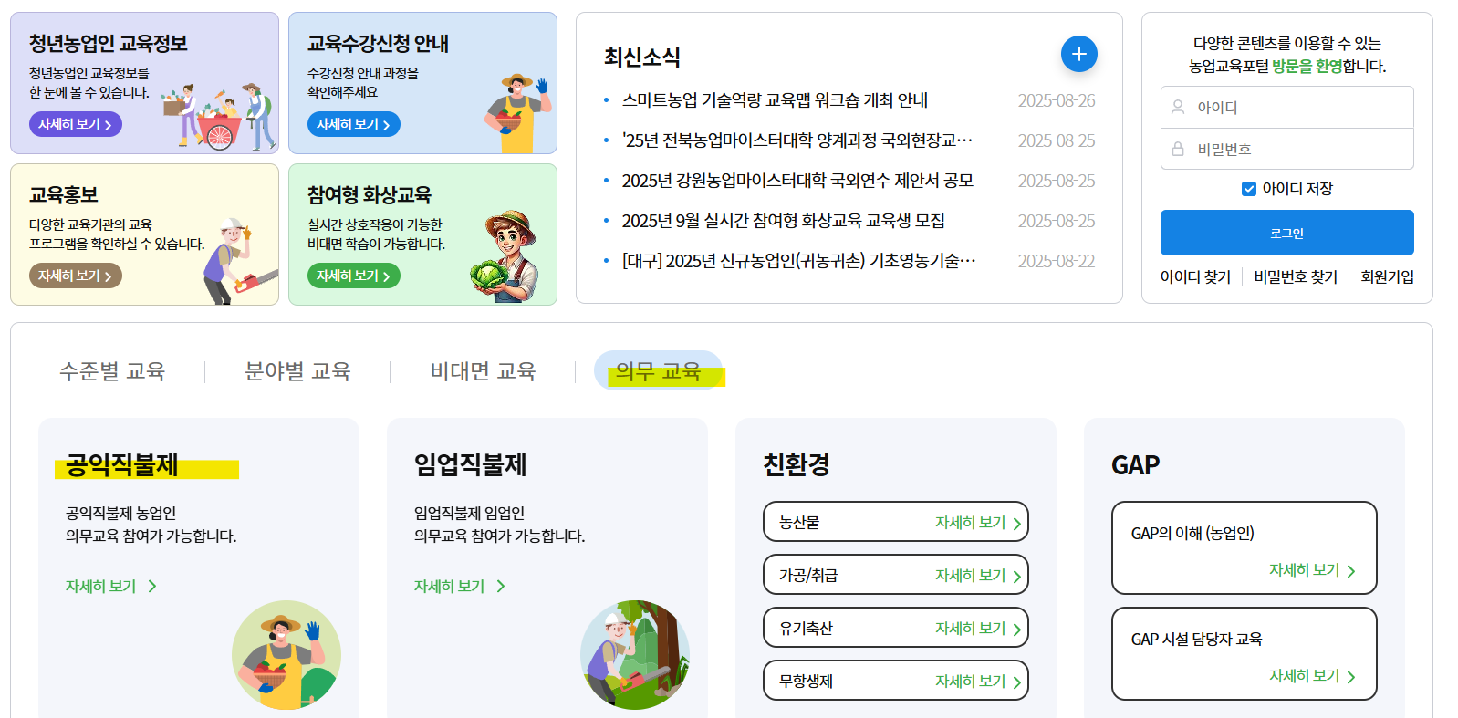 농업교육포털에 접속 후 회원가입 및 로그인을 해줍니다.