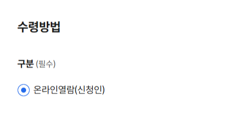 신청할 서비스를 선택하셨다면 입력란에 기본주소, 토지 구분 등을 입력해주세요. 열람인 경우는 온라인열람(신청인)밖에 선택지가 없는데 그대로 신청하시면 즉시 열람이 가능합니다,