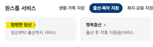 정부24에 접속하여 메인페이지->원스톱 서비스->출산/육아 지원->맘편한 임신을 클릭해주세요.