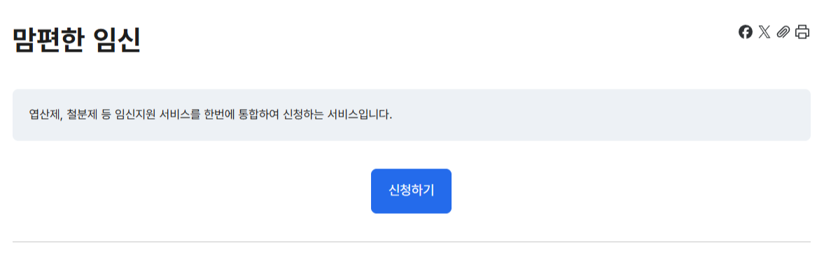 정부24에서 제공하는 임산부 전용 통합복지 신청 서비스(맘편한 임신 원스톱 서비스)로, 임신부에게 필요한 다양한 지원을 통합적으로 제공받을 수 있는 시스템입니다.