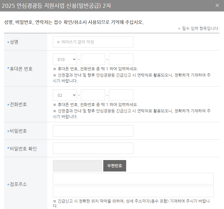 안심경광등 신청은 부가가치세법상 사업자 유형에 따라 구분됩니다. 간이과세자와 면세사업자는 무료로 공급받을 수 있으며, 일반과세자는 자부담금 2만 원 결제 후 지원받게 됩니다.